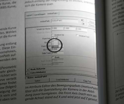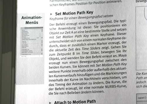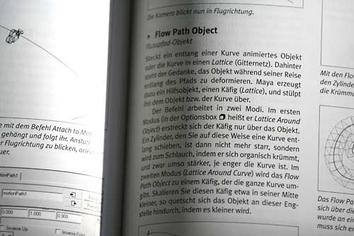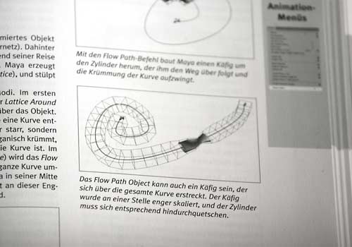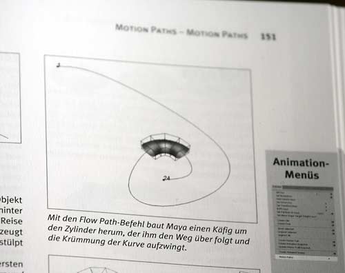 Bewegungspfade sind Kurven, an denen man Kameras oder andere Objekte entlang fahren lassen kann. Die Motion Paths nehmen den untersten Eintrag in Mayas Animate-Menü ein. Hier zeige ich Ihnen, wie diese drei sehr wichtigen Befehle in dem Buch behandelt werden. |