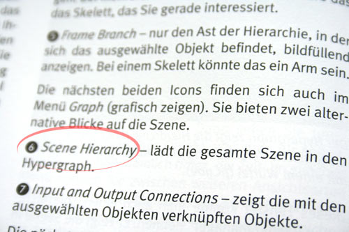 Das heißt, das Icon mit der Nummer 5 blättert Ihnen beim Arbeiten mit dem Hypergraph die logischen Abhängigkeiten der ausgewählten Objekte ab, während das Icon mit der Nummer 6 die Hierarchie der ganzen Szene öffnet.
