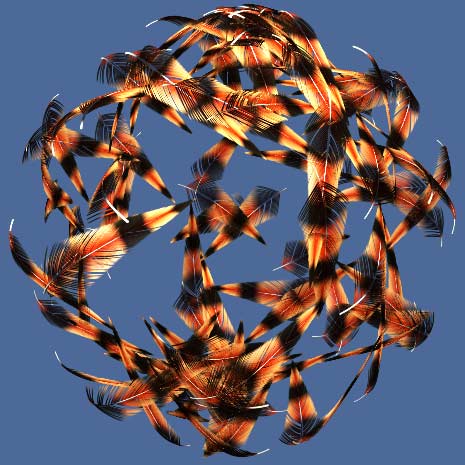 What you get a couple of seconds later is a bunch of brush strokes - feathers in my example - randomly distrbuted across the sphere's surface: |