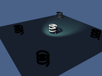 Ich habe schließlich mit dem letzten Vorschlag weitergearbeitet, wo das Licht nur die Vorderseite der mittleren Spirale trifft. Aber natürlich ist das Geschmackssache. Eine Zufallsfunktion, die man benutzt und anschließend wegschmeißt. |