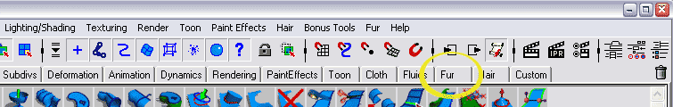 Final Note. Fur is a powerful tool. Its commands are complex and reside in the lengthy Fur menu. Creating fur, however, is easy and straight forward by using the presets from the Shelf bar and modifying them. |