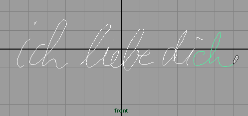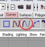 Next, click on the Curves tab in the Shelf bar. Among other icons you find the Freehand Curve Tool. Click on it and start drawing one or more curves in the Front window: |