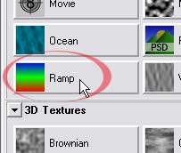 This opens the Visor which lets you choose among several mapping types. We go for the Ramp of course - the ramp which will cut our cylinder. |