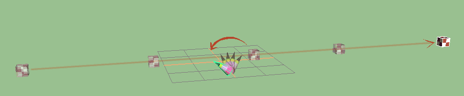 Wenn wir den Kegel um +2 Winkelgrade drehen, bewegt sich der Würfel um genau 2 Einheiten entlang der X-Achse. Wenn wir den Kegel um -45 Grad drehen, bewegt sich der Würfel um 45 Einheiten, also sehr weit nach rechts. |
