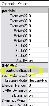 Es lohnt sich, nicht nur ein Einzelbild zu rendern, sondern eine ganze Animation. Feuer muss man in Bewegung sehen. Feuer gehört zu den Partikeln, einem komplexen Gebiet in Maya. Wenn es Sie reizt, beginnen Sie Ihre Erforschung des Feuers, indem Sie in der Channel Box particleShape aufsuchen: |