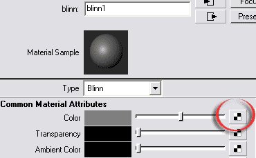 The new material's attribute editor opens. Click on the checker icon next to "Color": |