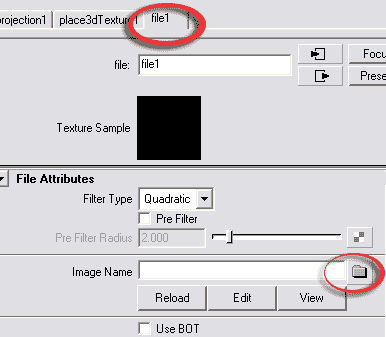 Clicking on the checker icon is Maya's way to apply a speciality to the color. In our case: the projection of an image. See the illustration below: Check "As projection" and then choose "File". File in this case means image or a sequence of images: |