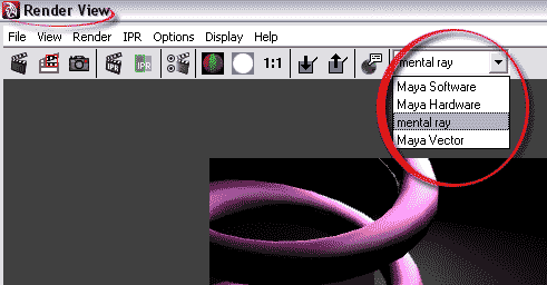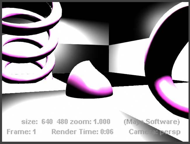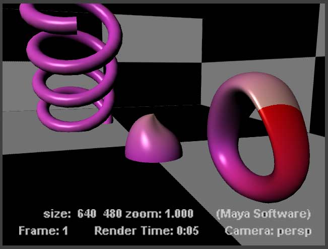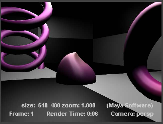 In the Render View window switch back to the Maya software renderer and click the render button again. This is what you'll get:  |