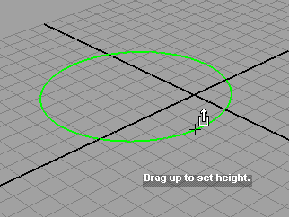 In this case I layed out the position and size of the base of a cylinder. Maya now prompts me to determine the hight. |