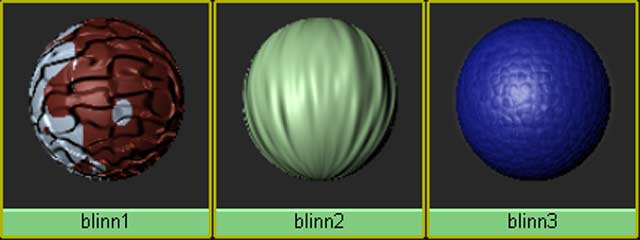 Bump Maps, rendered using Maya Software (left), Mental Ray, Renderman |