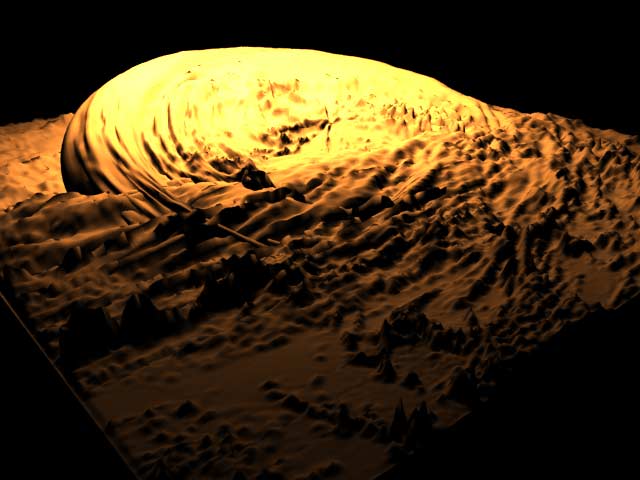 I attached the photo of a hurricane as a file texture to both objects as a displacement map and rendered the scene straight away with the default render settings. This is what I got: |