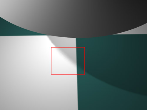Erinnern Sie sich an dieses Bild von dem Experiment mit der getrimmten Fläche? Die graue Fläche oben sieht perfekt aus, aber der Schatten weist, so nah betrachtet, zu viele Ausfransungen auf. Die Szene wird von nur einem Licht beleuchtet, einem Flächenlicht (Area Light). Was wir tun müssen ist das: dem Licht in dessen Attribute Editor spezielle Eigenschaften für das Rendern von Schatten hinzufügen. |