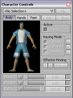 Now take at a look at the Character Controls window, the center for character animation. Nothing seems to happen there. Nothing to click on. Why? Because at this stage Motionbuilder knows where which bone should be placed but hasn't yet interpreted them yet. This will happen in the next step. |